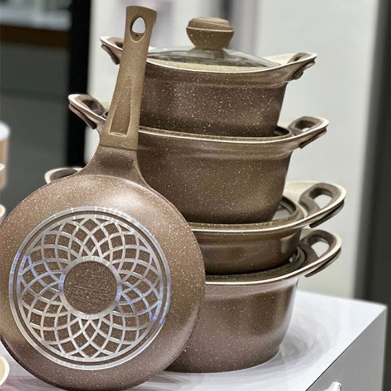سرویس قابلمه 9 پارچه ANC سرویس قابلمه 9 پارچه ANC یکی از تولیدات ممتاز شرکت ANC است که با طراحی زیبا و کیفیت ساخت عالی، انتخابی ایدهآل برای آشپزخانههای مدرن محسوب میشود. این سرویس ترکیبی از دوام، کارایی و ظاهر شیک را در اختیار شما قرار میدهد ✨ 🔥 ویژگیها - بدنه آلیاژی ویژه با ضخامت 3.5 میلیمتر → توزیع یکنواخت حرارت و صرفهجویی در انرژی - روکش داخلی گرانیت نچسب → پخت سالم و بدون نیاز به روغن - دربهای شیشهای پیرکس مقاوم → امکان مشاهده روند پخت بدون باز کردن درب - دستگیرههای ضد حرارت و پرچشده → ایمنی و دوام بیشتر - جنس چدن با پوشش ماربل و تکنولوژی نانو سیلور → مقاومت بالا و طول عمر طولانی - سیستم خروجی بخار زیر دسته → جلوگیری از جمع شدن بخار و پخت بهتر غذا 📦 اقلام موجود در سرویس قابلمه 9 پارچه ANC - قابلمه دربدار شیشهای سایز 20 - قابلمه دربدار شیشهای سایز 24 - قابلمه دربدار شیشهای سایز 28 - تابه دو دسته سایز 28 - تابه تکدسته سایز 26