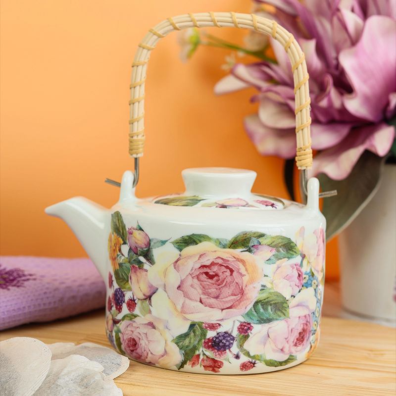 قوری دسته حصیری میس بتی مدل ROSE DELUXE با طراحی ظریف و جذاب، انتخابی ایدهآل برای سرو چای در مهمانیها و استفاده روزمره است. این قوری با بدنه سرامیکی لعابی و دسته حصیری مقاوم، ترکیبی از زیبایی و کارایی را ارائه میدهد. دسته حصیری علاوه بر ایجاد ظاهری کلاسیک، امکان حمل و جابجایی راحت قوری را فراهم میکند. طراحی گلهای رز در رنگهای ملایم، جلوهای لوکس و دلنشین به این قوری بخشیده است