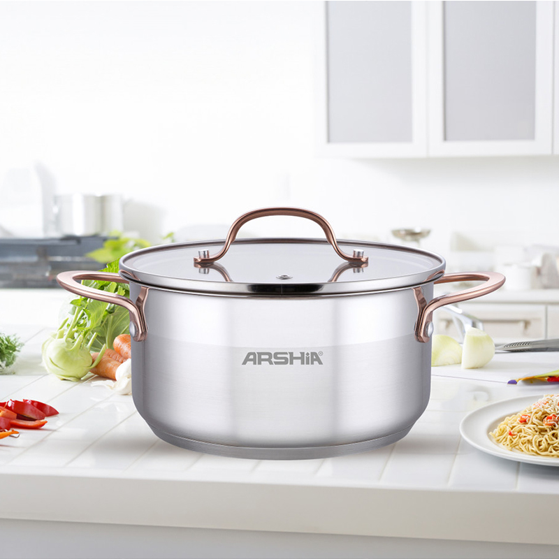 SS014-2972 Arshia Stainless Steel Casserole with 2Lid 18cm Cooper