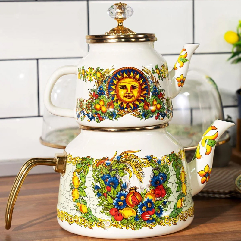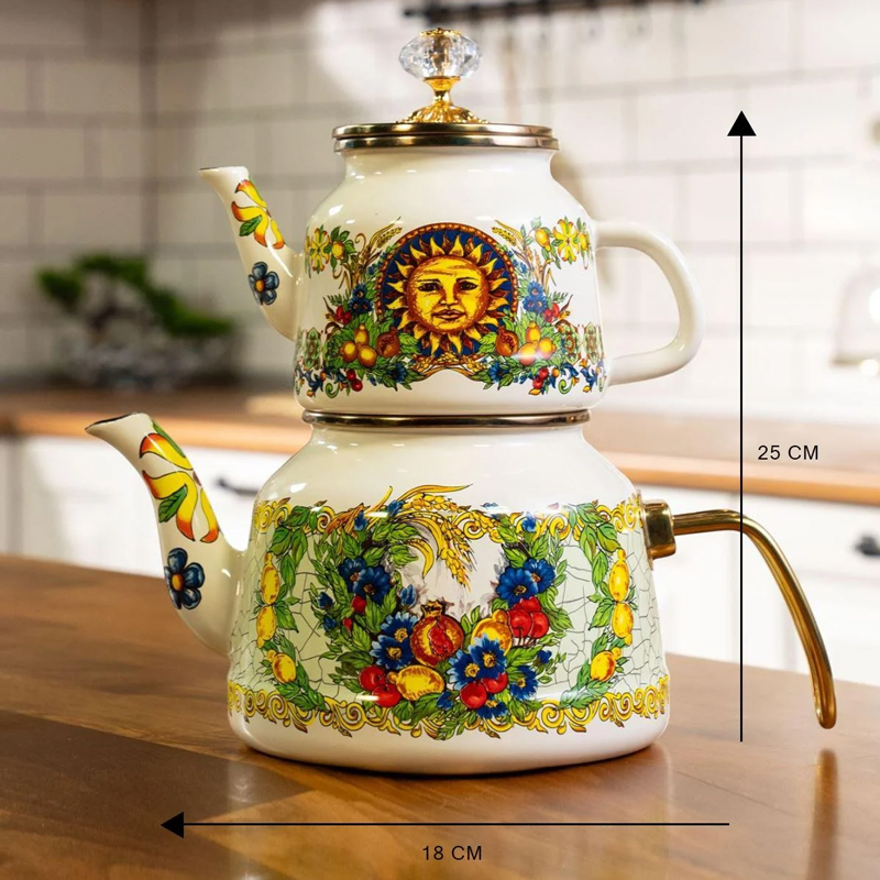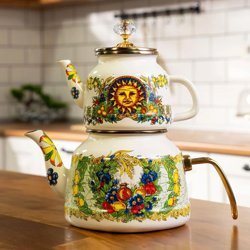 ست کتری و قوری میس بتی مدل Toscana یک مجموعه زیبا، بادوام و کاربردی برای تهیه و سرو چای و دمنوش های گرم است. بدنه هر دو قطعه از فلز مقاوم با روکش لعاب با کیفیت ساخته شده که علاوه بر ظاهر شیک، در برابر حرارت، خط و خش و زنگ زدگی مقاومت بالایی دارد. لعاب استفاده شده فاقد هرگونه مواد مضر بوده و طعم و کیفیت نوشیدنی را تغییر نمی دهد. کتری این ست دارای ظرفیت مناسب برای استفاده روزمره و مهمانی هاست و قوری با طراحی زیبا و درب متناسب، امکان دم کشیدن عالی چای را فراهم می کند. دسته های مقاوم و عایق حرارت، استفاده از این مجموعه را ایمن و راحت می سازد. طراحی و رنگ بندی خاص مدل Toscana، جلوه ای کلاسیک و چشم نواز به آشپزخانه و میز پذیرایی شما می بخشد. این ست قابل استفاده روی انواع اجاق ها بوده و شست و شوی آن به راحتی با دست انجام می شود
