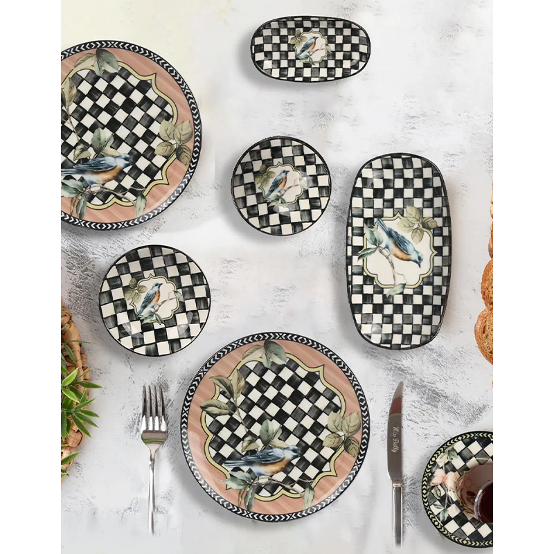 - سایر توضیحات: شامل 6 عدد بشقاب کیک، 6 عدد نعلبکی چای، 2 عدد بشقاب پنیر، 2 عدد بشقاب قایقی 15 سانتیمتری، 2 عدد بشقاب قایقی 21 سانتیمتری و 4 عدد ظرف مربا 10 سانتیمتری
