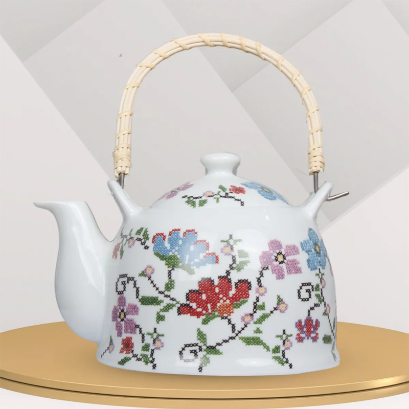 قوری دسته حصیری میس بتی مدل Piraye یک انتخاب زیبا و خاص برای سرو چای و دمنوش های گرم است. بدنه این قوری از فلز مقاوم با روکش لعاب با کیفیت ساخته شده که علاوه بر جلوه ای جذاب، در برابر خط و خش و زنگ زدگی مقاومت بالایی دارد. لعاب استفاده شده فاقد هرگونه مواد مضر بوده و طعم و کیفیت نوشیدنی را تغییر نمی دهد. دسته این قوری از حصیر طبیعی بافته شده که علاوه بر زیبایی، عایق حرارت است و استفاده از قوری را آسان و ایمن می کند. طراحی این محصول الهام گرفته از سبک کلاسیک و با رنگ بندی و نقوش خاص مدل Piraye است که می تواند به میز پذیرایی شما جلوه ای منحصربه فرد ببخشد. این قوری مناسب استفاده روزمره و مهمانی ها بوده و قابلیت شست و شو با دست را دارد. با نگهداری صحیح، این محصول سال ها کیفیت و زیبایی خود را حفظ می کند