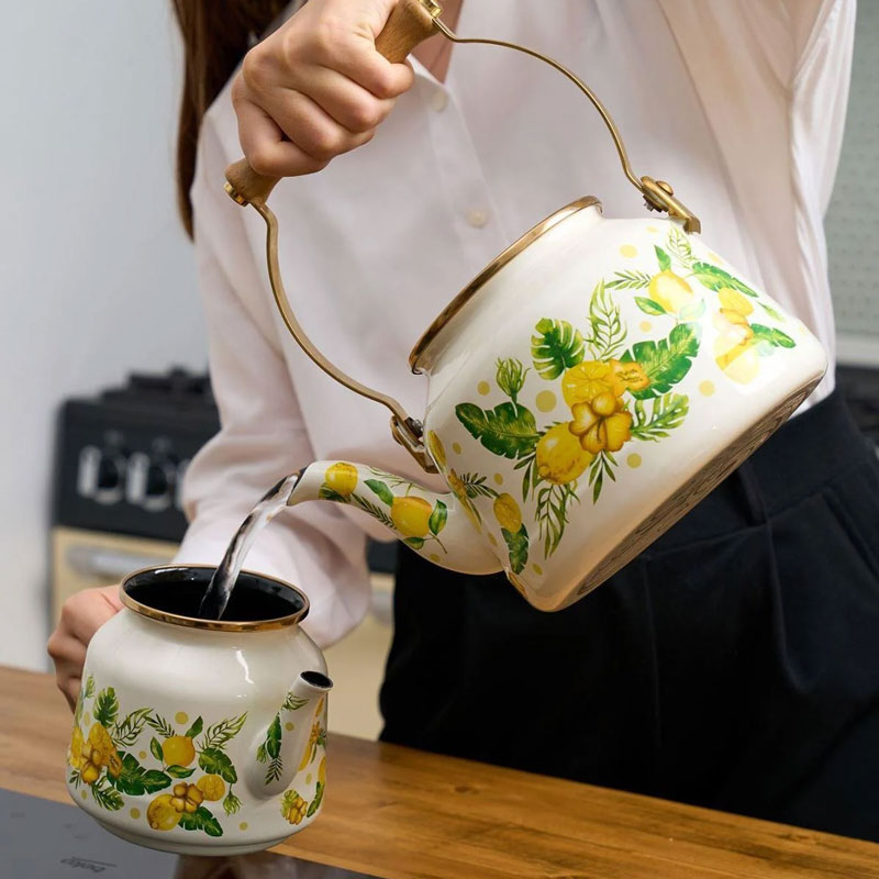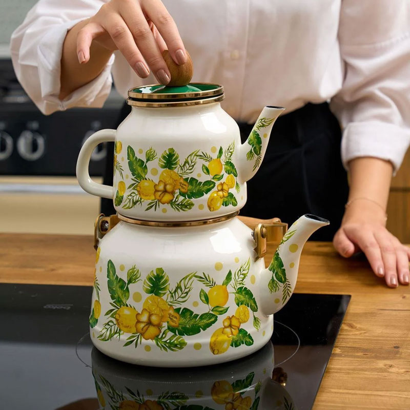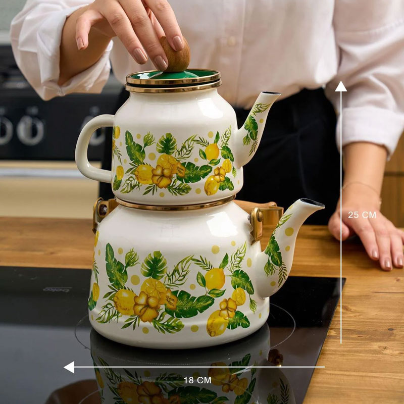 ست کتری و قوری میس بتی مدل Citrus با طراحی زیبا و رنگ بندی خاص، ترکیبی از کارایی و جلوه ای چشمگیر را برای آشپزخانه و میز پذیرایی شما به ارمغان می آورد. این محصول از فلز مقاوم با روکش لعاب شیشه ای با کیفیت ساخته شده است که از 100 درصد مواد طبیعی تهیه شده و فاقد هرگونه افزودنی شیمیایی است. سطح صاف و غیر متخلخل لعاب، کاملاً بهداشتی بوده، طعم و کیفیت نوشیدنی را حفظ کرده و به راحتی تمیز می شود. کتری این ست ظرفیت مناسبی برای استفاده روزمره و مهمانی ها دارد و قوری با طراحی هماهنگ، امکان دم کشیدن عالی چای و دمنوش ها را فراهم می کند. دسته های مقاوم و عایق حرارت، استفاده از این ست را ایمن و راحت می سازد. ظروف لعابی قابل استفاده روی انواع اجاق ها از جمله شعله ای و القایی بوده و در فر نیز قابل استفاده هستند